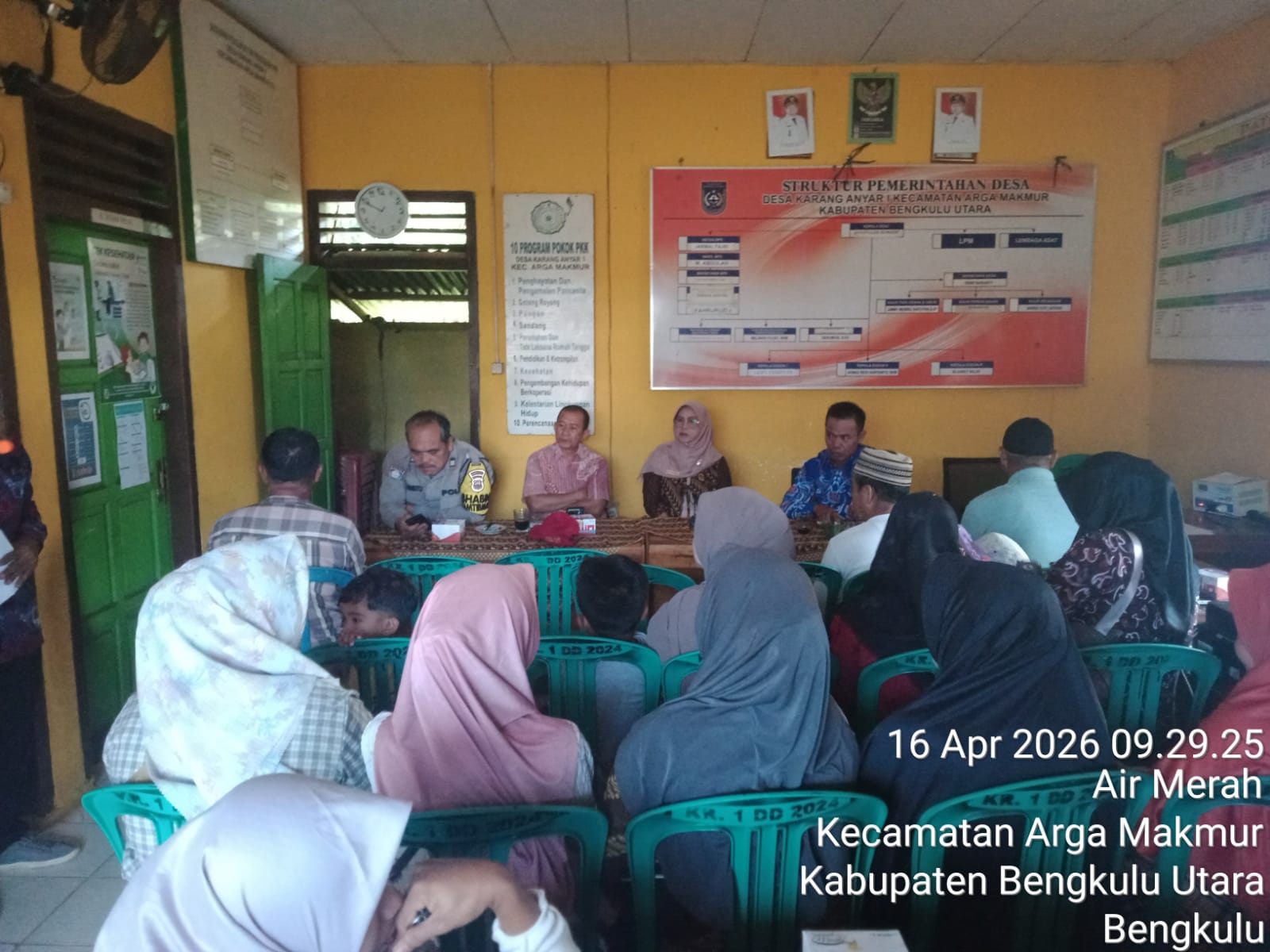 Wartadaerah.com, BU – Pemerintah Desa Karang Anyar I Kecamatan Kota Arga Makmur Bengkulu Utara, Kamis (17/04/2026), menyelenggarakan kegiatan Musyawarah Desa Pra Pelaksanaan Kegiata Tahun Anggaran 2026. Agenda yang dilaksanakan di Kantor Desa Karang Anyar I ini dihadiri oleh Kasi PMD Kecamatan Kota Arga Makmur, …… unsur Pemerintah Desa, ketua dan anggota Badan Permusyawaratan Desa (BPD), para penerima manfaat Bantuan Langsung Tunai Dana Desa (BLT-DD), pengurus lembaga-lembaga kemasyarakatan tingkat desa, Pendamping Desa, serta tokoh masyarakat dan undangan lainnya. Kehadiran berbagai unsur tersebut menunjukkan komitmen bersama dalam mendukung transparansi, partisipasi, serta akuntabilitas pelaksanaan pembangunan desa.