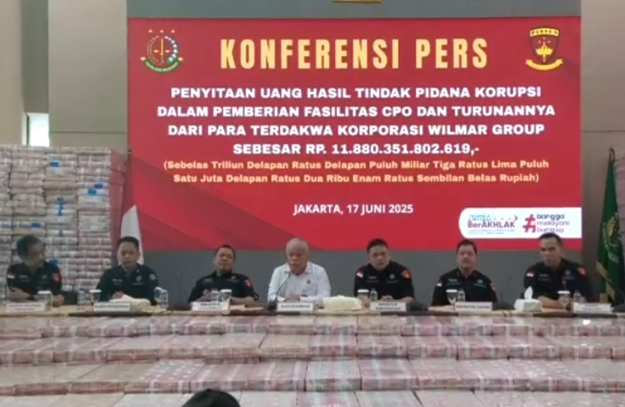 WartaDaerah.com, Jakarta – Kejaksaan Agung (Kejagung) menyita uang sebesar Rp11,8 triliun dari terdakwa korporasi PT Wilmar Group, terkait perkara dugaan korupsi pemberian fasilitas ekspor minyak sawit mentah atau crude palm oil (CPO) dan produk turunannya pada 2022.