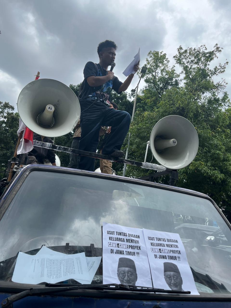 Lebih jauh, mahasiswa juga menuding adanya praktik cawe-cawe proyek oleh pihak keluarga Menteri PU, khususnya di Jawa Tengah dan Jawa Timur. Indikasi tersebut mencakup intimidasi terhadap kepala balai agar memenangkan pihak tertentu, pengaturan tender proyek untuk tim sukses saat pilkada, serta dugaan adanya permintaan fee proyek sebesar 12% dari pihak swasta maupun BUMN.