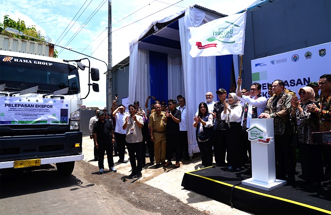 Jawa Tengah – Menteri Perdagangan, Budi Santoso melepas ekspor produk mainan gigitan atau kunyahan anjing (dog chew) yang terbuat dari kayu kopi dan sabut kelapa senilai Rp35 miliar ke Amerika Serikat (AS) dan kawasan Eropa di Kabupaten Purworejo, Jawa Tengah, Selasa (24 Feb). Produk inovatif tersebut diproduksi Desa Sejahtera Astra Purworejo binaan Astra.